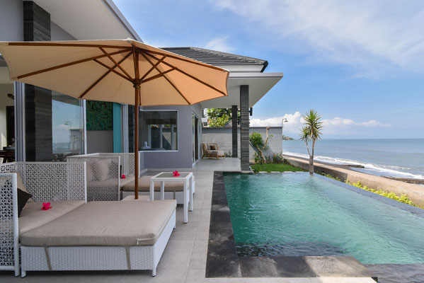 The gorgeous KOKO BEACH VILLAS consist of a group of four private villas directly on the sparkling black beach in Lovina, North Bali. They offer a retreat from daily life and impress with modern architecture and stylish furnishings.